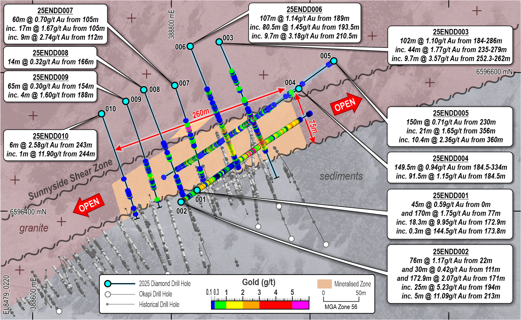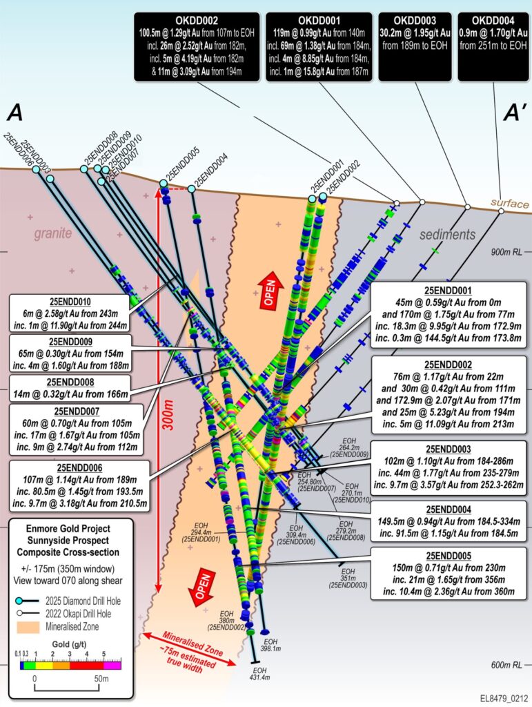 - 149.5m @ 0.94g/t Au from 184.5m, incl. 91.5m @ 1.15g/t Au from 184.5m (25ENDD004)